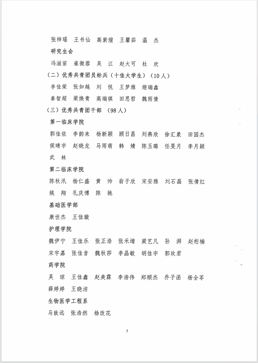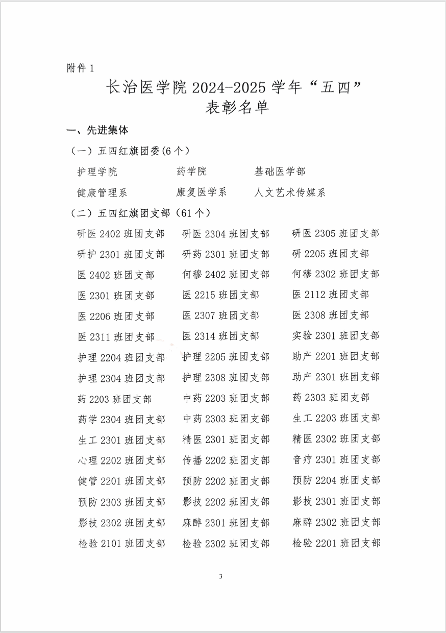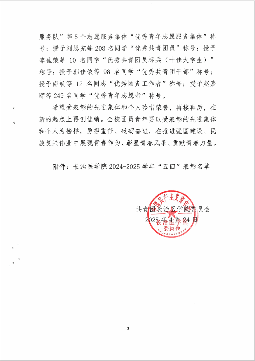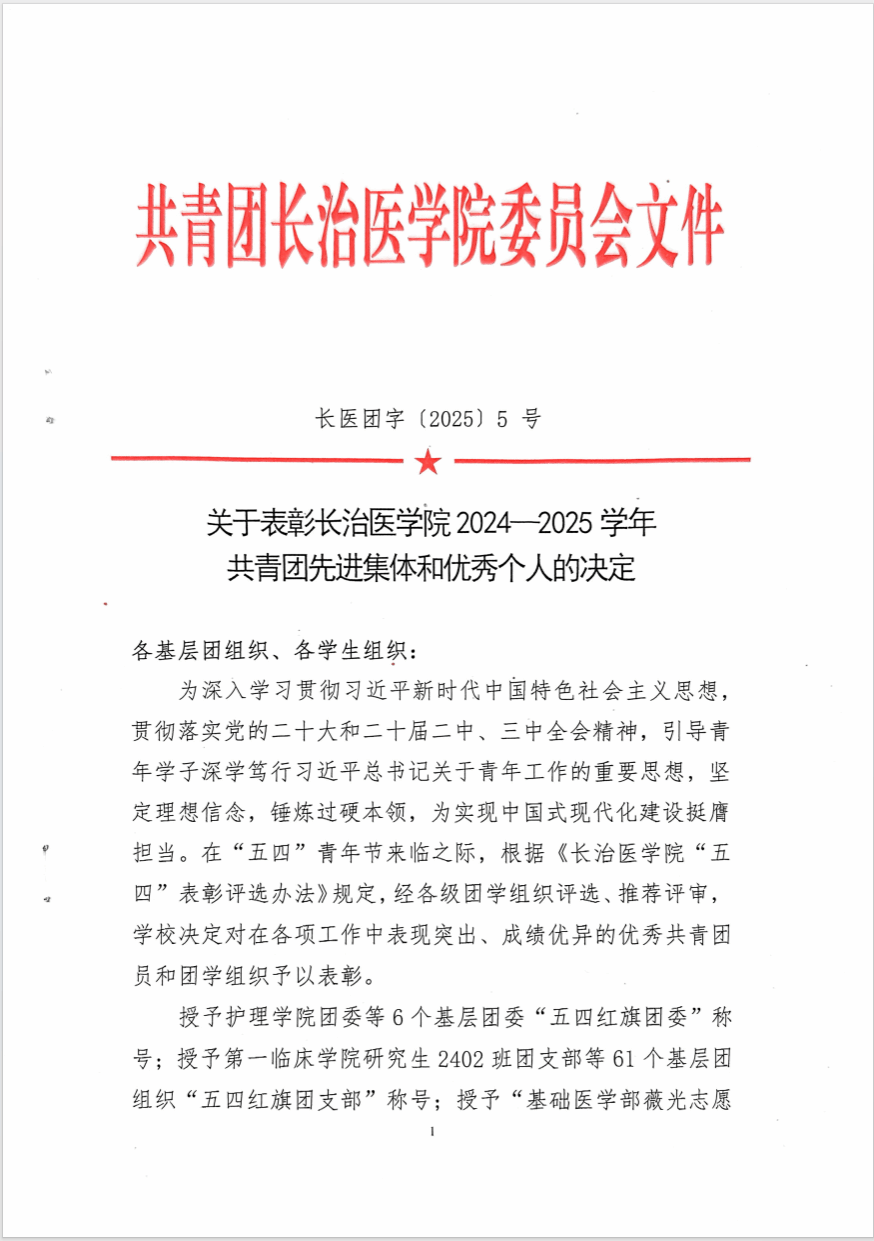 关于表彰长治医学院2024-2025学年共青团先进集体和优秀个人的决定