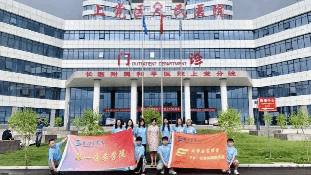 7月12日早晨八点钟,我们从北区校门口出发,经过半个小时的车程到达了长医学院附属和平医院上党分院,并在医院大门口进行了拍照留念,就此开始了医疗服务团为期七天的社会实践之旅。