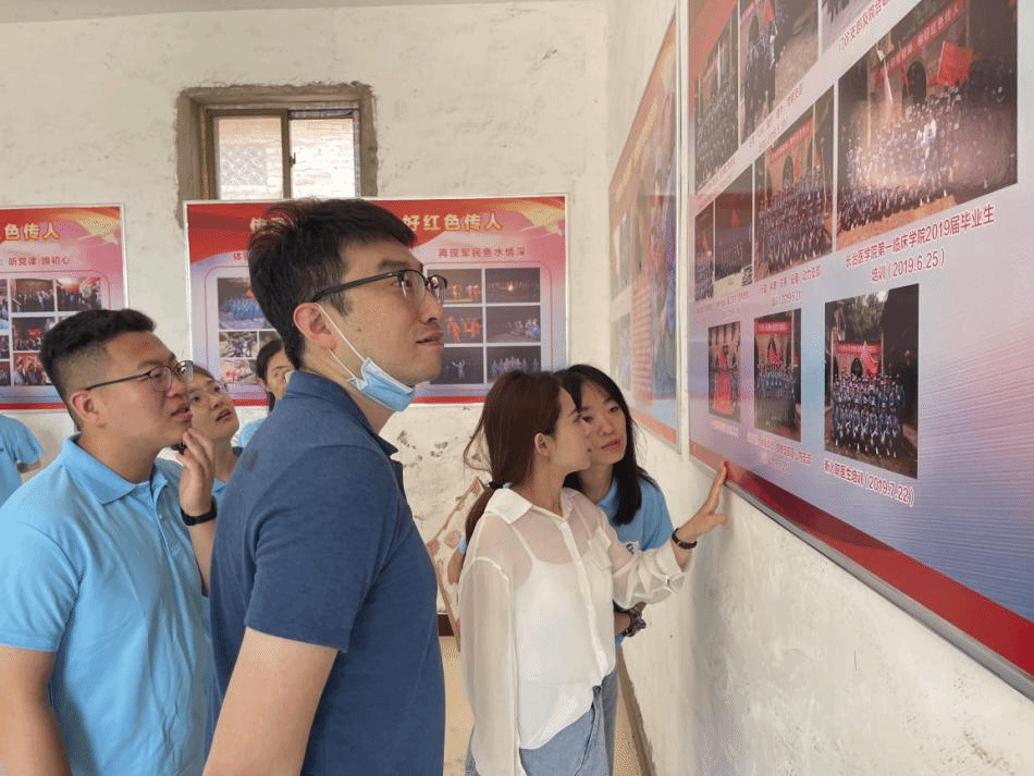 随后,在村长的引导下,实践团成员们乘车前往宽嶂山红色文化园。在红色文化园中,村长首先带领大家参观了“宽嶂山红色文化学习展览馆”,馆内展示了自建馆以来长治医学院各级领导干部、教师、青年学生及附属医院医生在西村的学习和服务情况。
