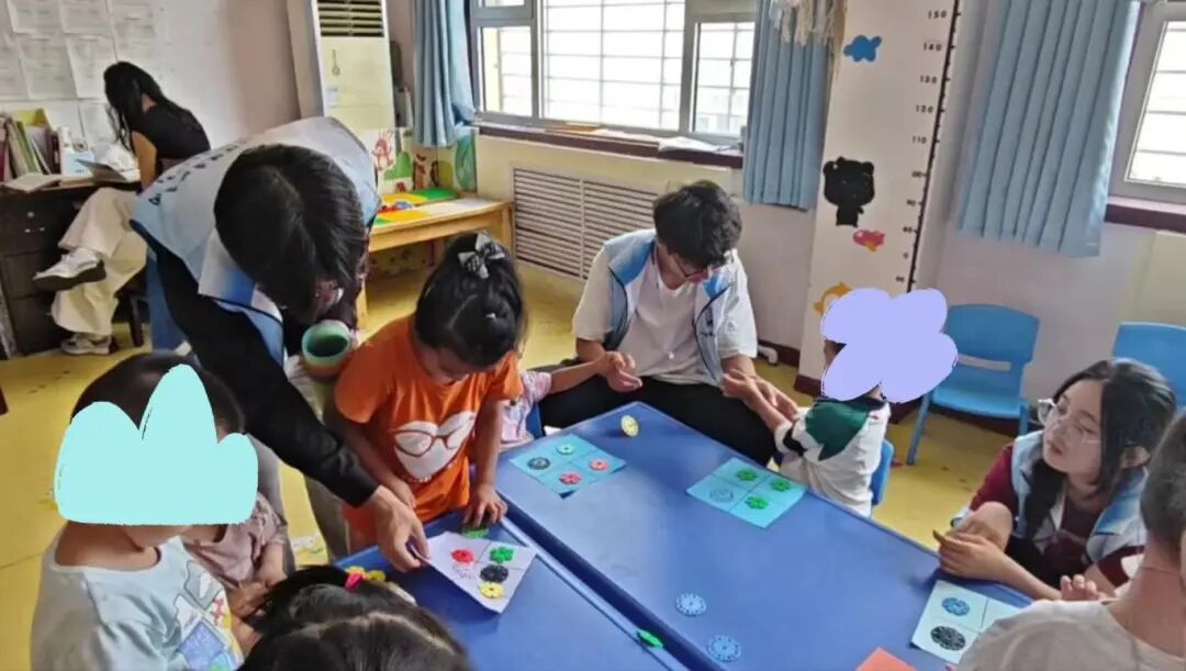 通过《耳听眼辨扣球》和《投保龄球炸弹》两个趣味游戏,锻炼了小朋友的专注力,考验了颜色辨认能力,提高了瞄准协调能力;队员与小朋友进行了舞蹈康复训练,提高身体协调性和促进心理健康,提供正面情绪价值,释放心理压力;辅导孩子们数学题目,锻炼孩子们的算数思维以及思考能力。