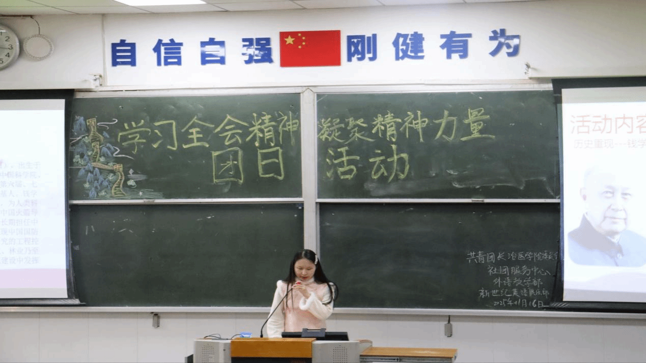 为了契合党的二十届四中全会审议通过“十五五”规划建议,“将精神传承与心理健康服务深度融合,帮助学生从精神财富中汲取心理能量,培育抗压能力、协作意识与成长动力,契合大学生心理健康成长的现实需求。由共青团长治医学院委员会,社团服务中心主办,新世纪英语俱乐部承办的“学习全会精神,聚焦精神力量“团日活动于2025年11月16日在校本部南区15教举行,出席本次活动的有新世纪英语俱乐部的成员和老师。