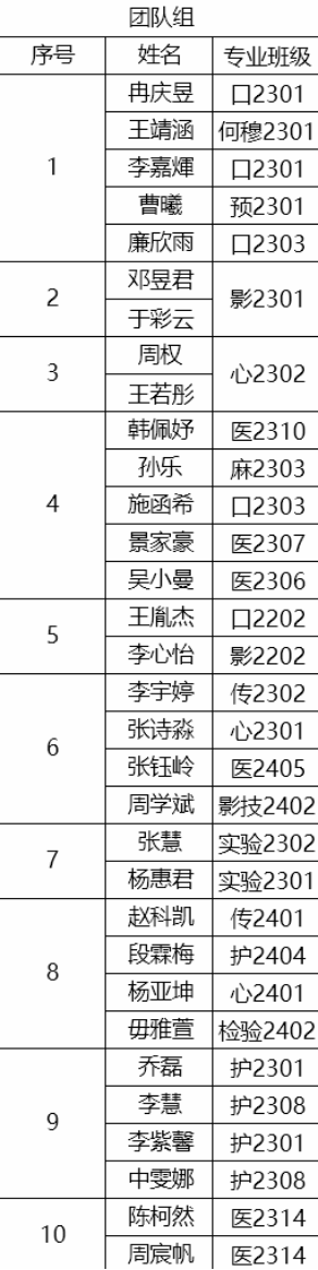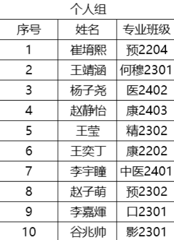经过激烈的比拼,个人和团队均取前十名作为晋级选手。名单如下:
