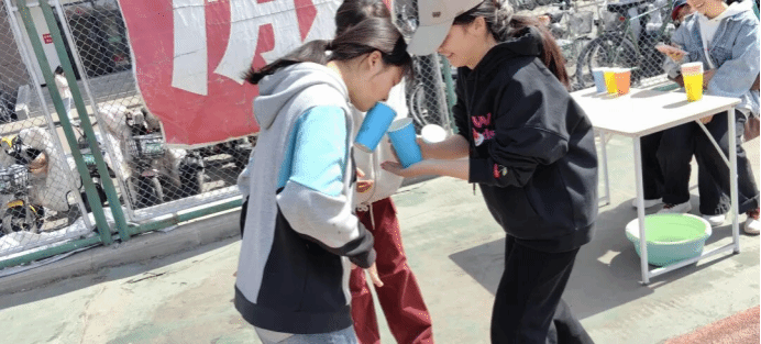 节水接力:团队协作守护“生命之源”:节水接力游戏现场热闹非凡,四人一组的同学们配合默契。首位同学艰难地大象转圈5圈后,努力保持平衡走2米传递水杯,队友们依次接力。大家在这个过程中切实体会到水资源传递的不易,也明白了保护水资源需要每个人的努力,团队协作精神在游戏中展现得淋漓尽致。